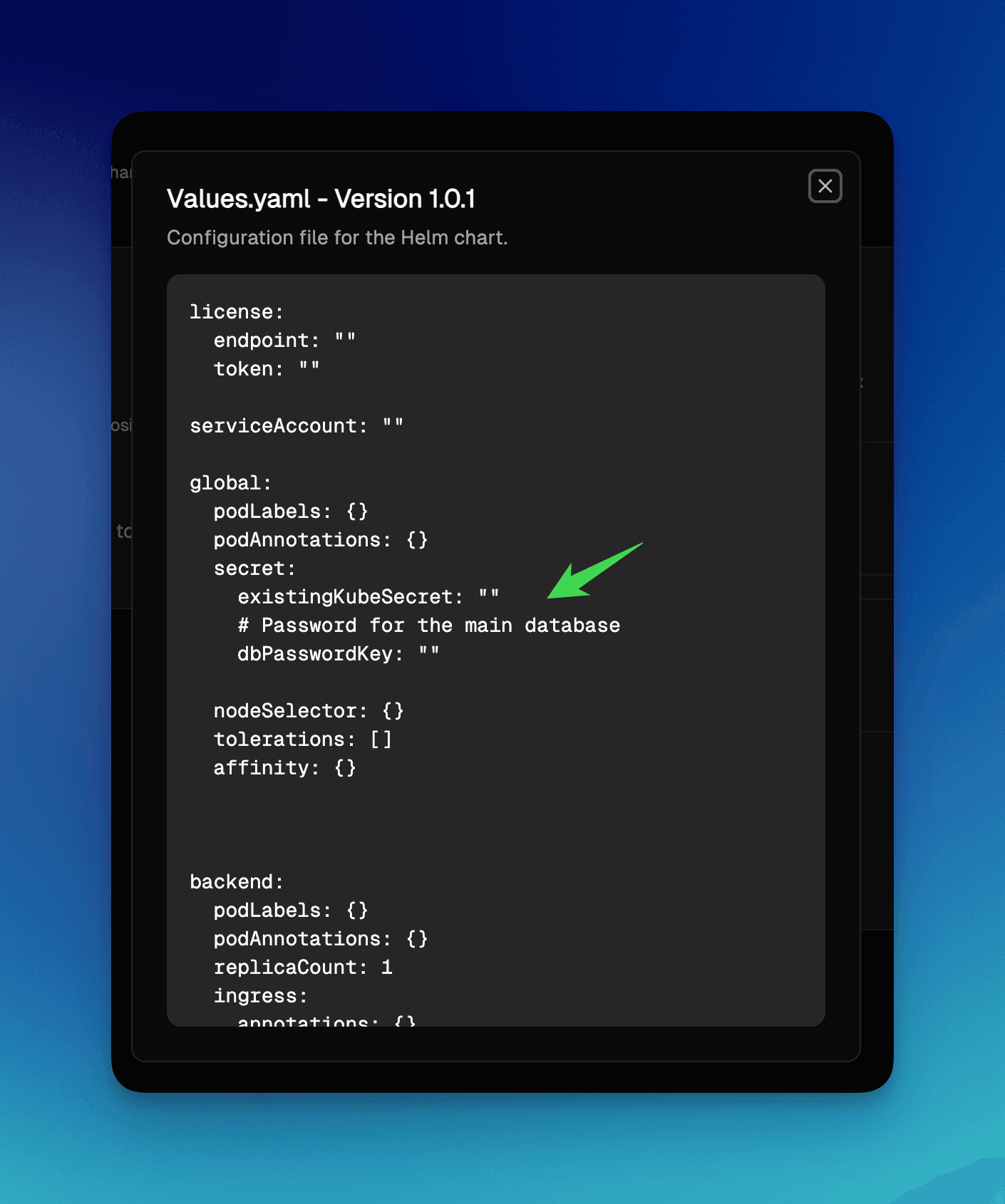 When you generate Helm charts from your services running in LocalOps (yes, you can generate helm charts in 1-click) and you expose these secrets for your helm chart users to pass in values, these descriptions come out in Values.yaml helping them to pass appropriate value.