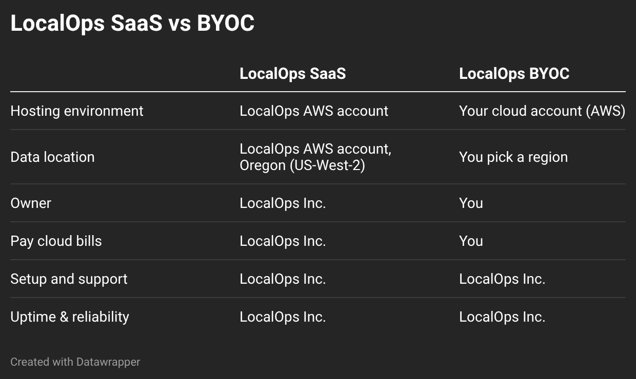 LocalOps Inc. was started with a mission to give data ownership back to users. We are more than excited to bring this BYOC version and support it first class. And for years to come!