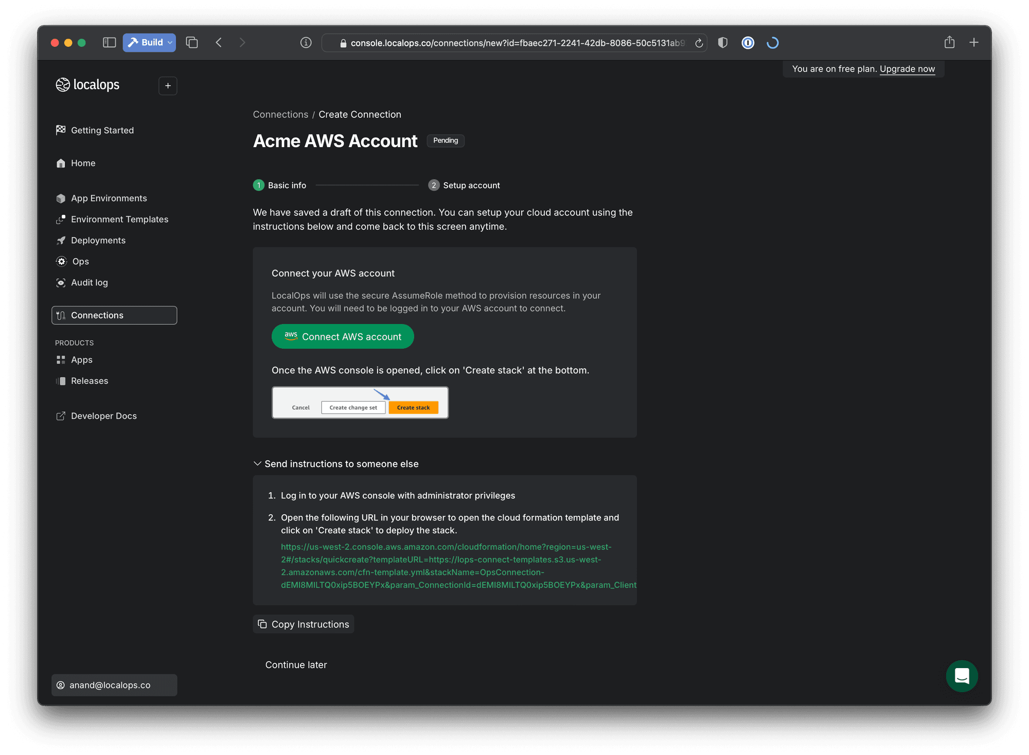 From today, to connect an AWS account in LocalOps, AWS account owners must: